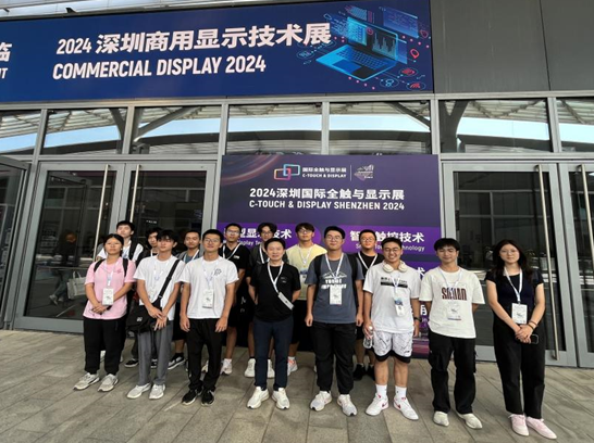 To further enhance the quality of cultivating outstanding talent, the College of Physics and Optoelectronic Engineering organized a visit for over 40 students from the College of Future Technology and the Optoelectronic Information Science and Engineering Excellence Class to attend the "C-TOUCH & DISPLAY SHENZHEN 2024" from November 6 to 7. The activity aimed to deepen students' understanding of frontier industrial technologies, showcase real-world applications in the field of optoelectronic information, and broaden their horizons, laying a solid practical foundation for future academic studies and research. The visit was led by Assistant Dean Associate Professor Li Guijun, Optical Information Department Chair Associate Professor Lei Lei, and Deputy Chair Assistant Professor Xu Xiuru.